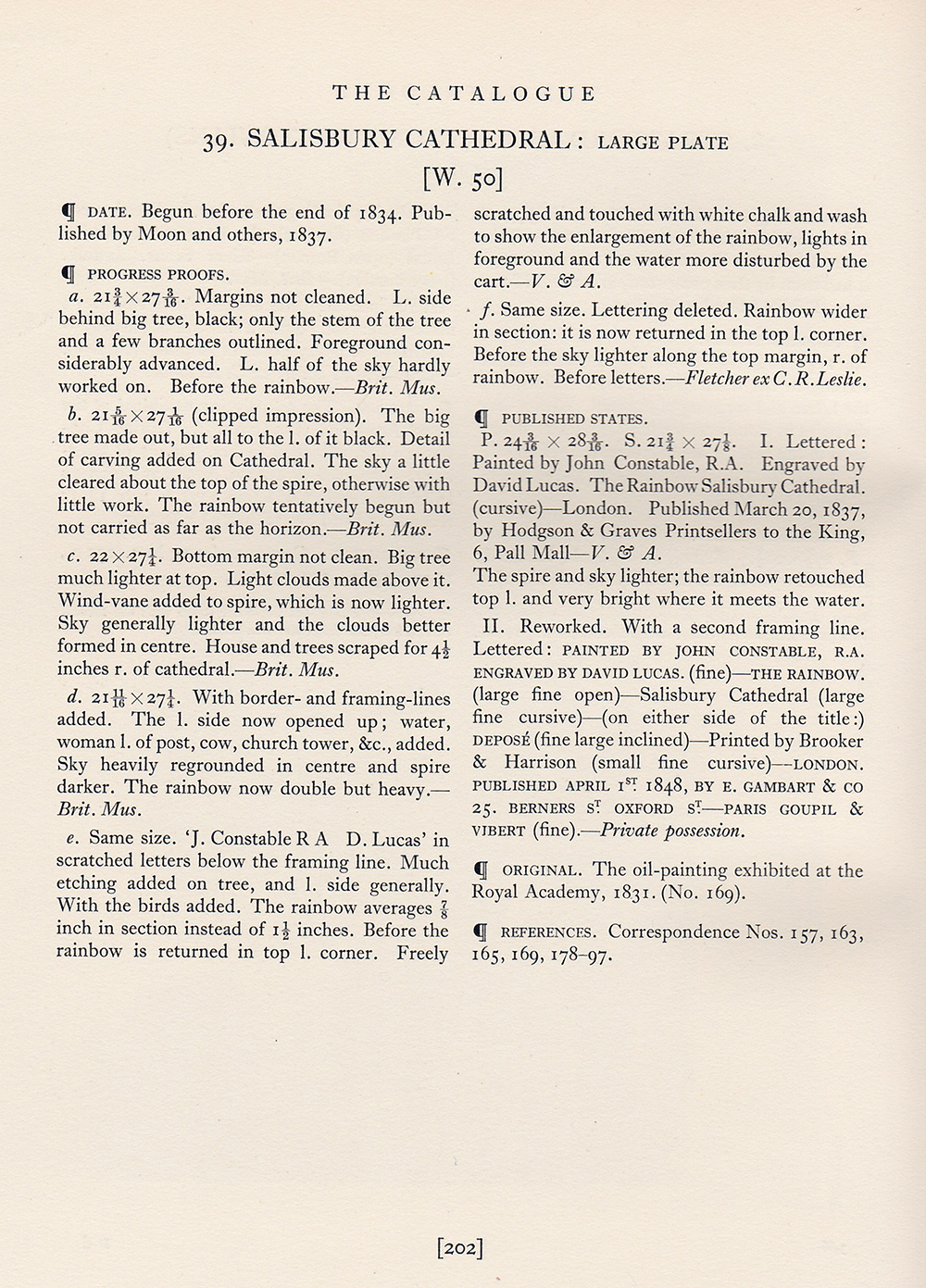 Crucially, however, Shirley was not aware of the letter written in 1846 by David Lucas relating that the plate was not actually editioned on the 20 March 1837 even though it was inscribed to that effect. Shirley’s list of published states, therefore, requires complete revision. The plate was in fact first published by E Gambart & Co in 1848. As we shall see, even after it was inscribed with the publication date of 20 March 1837 the plate underwent numerous revisions before its eventual publication by Gambart, and all impressions prior to the 1848 edition must now be categorised as proofs before publication. To all that we can now also add an entirely separate edition issued in 1896.