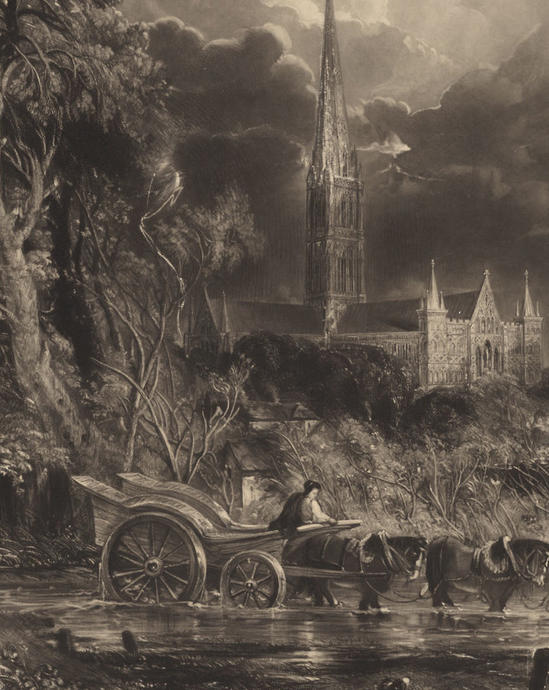Salisbury Cathedral from the Meadows, 1836