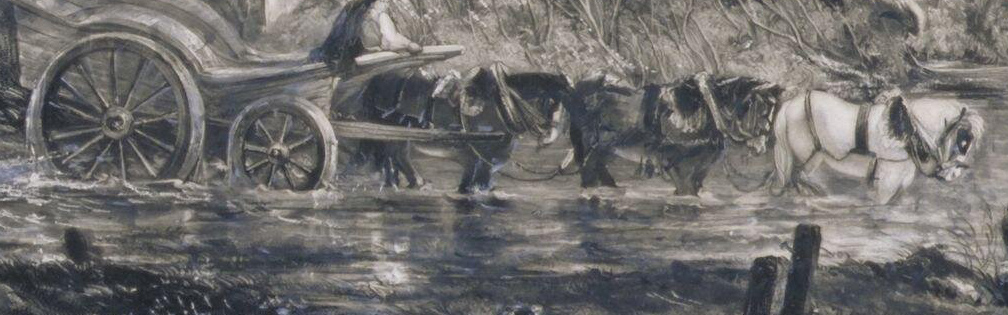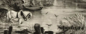 I took the proof out of the frame again – to add to the above remarks. Still more brilliancy on the willows over the horses and about the boat & man – both of which are more distinct – as well as the team horses, & light on collars. The waggon tail more sharp off. The wheels better drawn and clearer – more light on water – perhaps too much on right hand of post. A few lights on the upper branches of the large ash tree.
