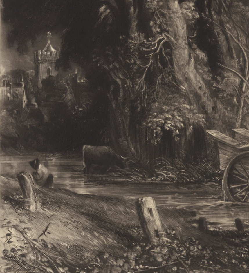 On 10 November 1836 Lucas visited Constable’s studio and watched the artist demonstratively work over a proof, and put the result in a glazed frame. The following day Constable wrote: ‘I send you a few notes, of what we did yesterday. I have not taken it out of the frame today as I felt satisfied & more, delighted, at the degree of perfection it now presents.’