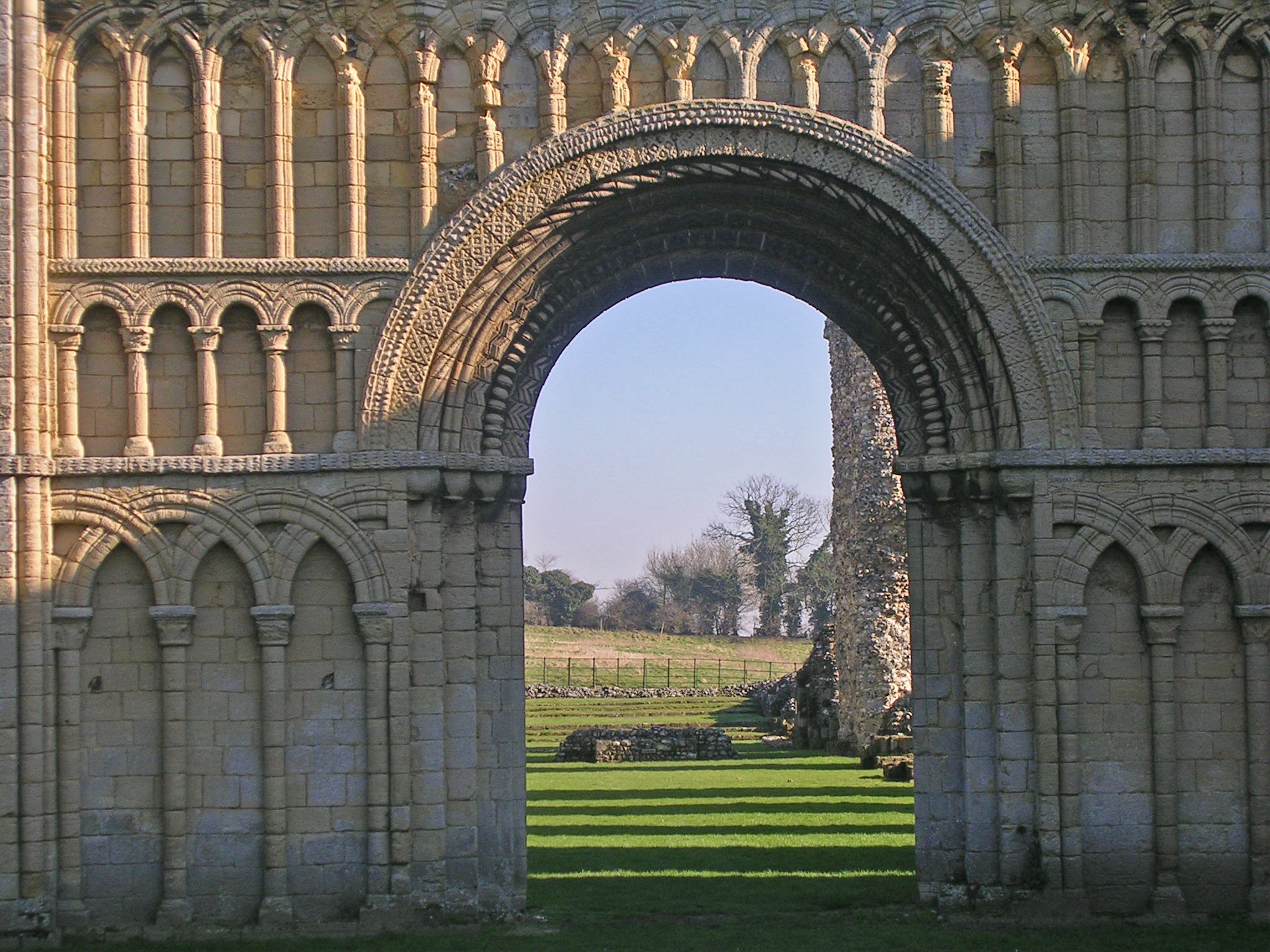 This is perhaps the first subject amongst Cotman’s first series of etchings to indicate an academic interest in antiquarian history. The composition selects out the window as of implicit significance in itself. It had already been recognised that the way in which interlocked round-headed Romanesque arches produced pointed Gothic arches, was indicative of a transition from one architectural era to the other. Cotman could see examples of the former all around in Norfolk, Norwich Cathedral has ranges of them, as does Castle Acre Priory,