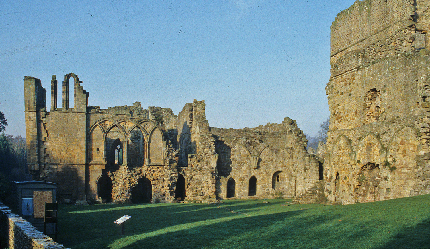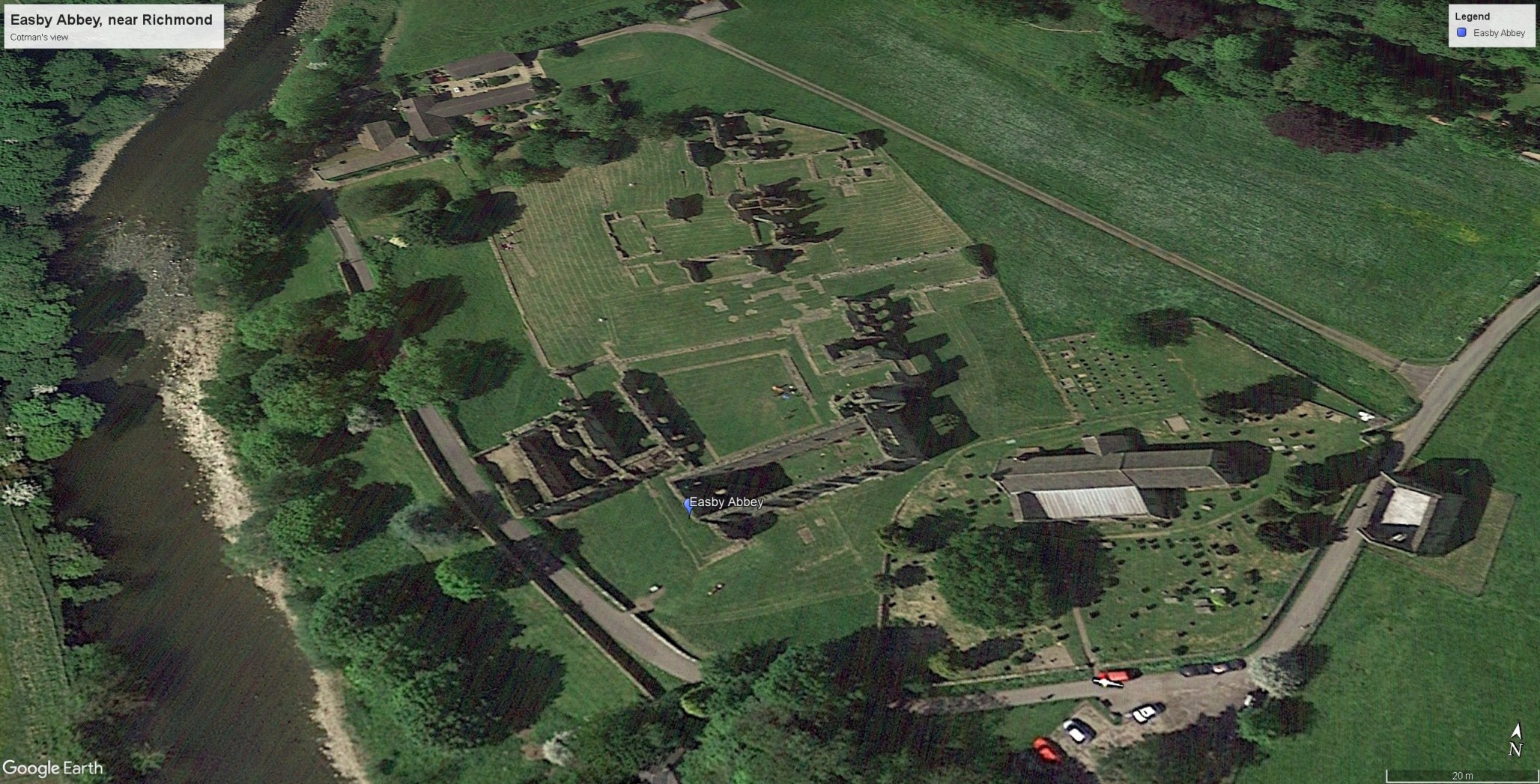 St Agatha’s Abbey, Easby was founded about 1155 by the Constable of Richmond Castle, to house a community of White Canons. It enjoyed a favoured site in a wide sweep of the river, sheltered by Easby Banks behind. From the early fourteen century it enjoyed the patronage of successive generations of the powerful Scrope family of Bolton Castle in Wensleydale. At its peak it was an extensive complex, and despite the complete destruction of the abbey church, the ancillary buildings are extensive and substantial.