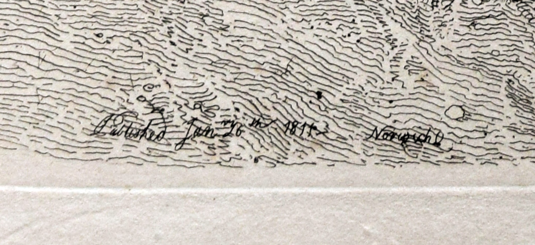 The plate was etched by Cotman for his first series of ‘Etchings by John Sell Cotman’. This was issued to subscribers in parts, and the present subject formed plate 22 in the complete edition as published in 1811. It is the thirteenth plate of the series in date order. In January 1811 Cotman appears to have been finding his full confidence in etching. This is the largest plate in the series, and is dated 26 January, less than a week after the previous largest Easby Abbey (plate 20) which is only very slightly smaller.