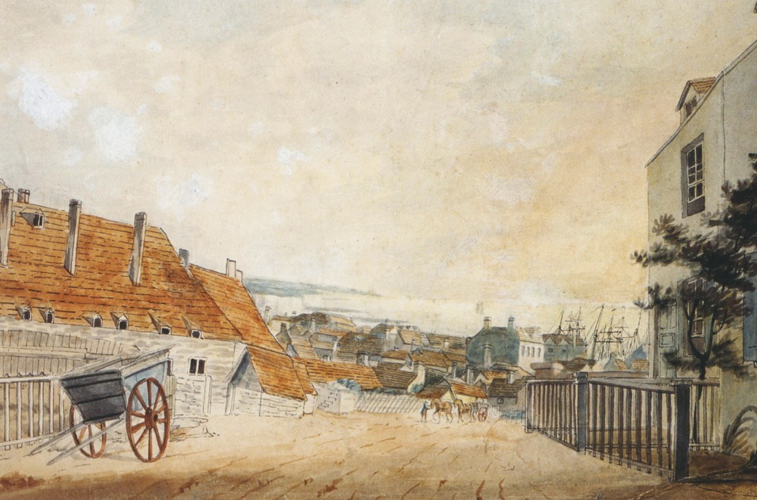 Pen ink and watercolour on paper, 10 5/8 x 16 ins, 270 x 407 mm Private Collection Turner catalogues; Wilton 2; tdb 148 This is one of a series of four watercolours all sharing the same provenance, evidently having been gifted by Turner's mother to a Jane Hunt of London who married James Taylor of … Continue reading A street in Margate, looking down to the harbour, c.1788